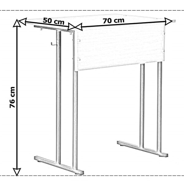 Banca școlară are cadrul fix, din țeavă de oțel vopsit în câmp electrostatic.